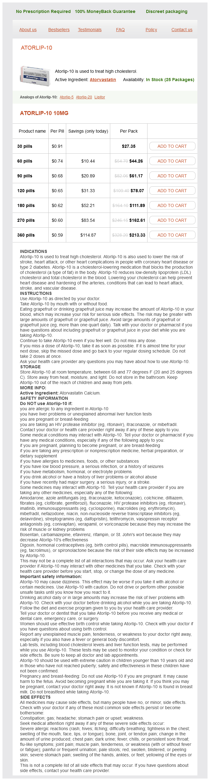 Atorlip-10 packs: 30 pills, 60 pills, 90 pills, 120 pills, 180 pills, 270 pills, 360 pills