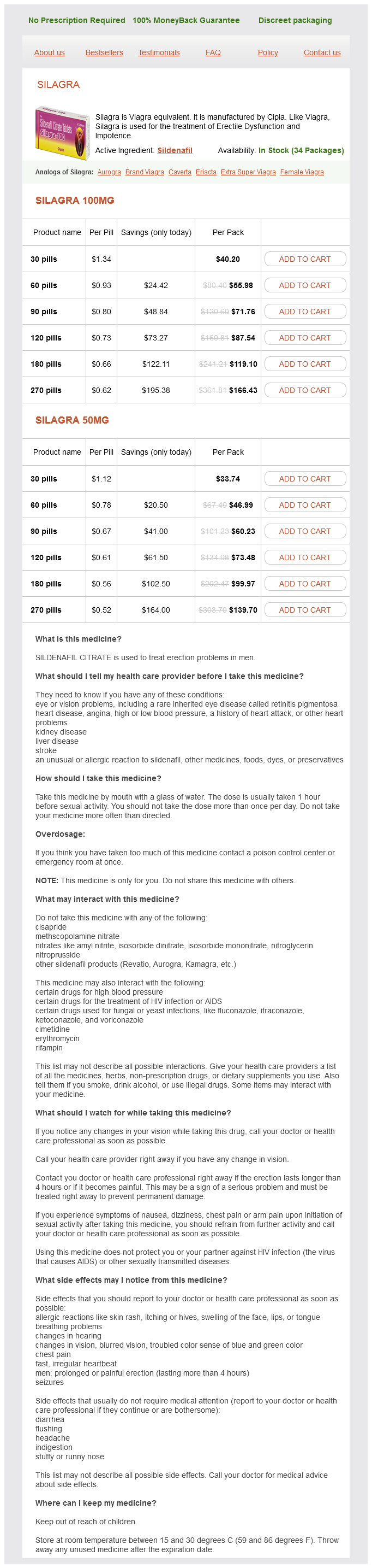 Silagra packs: 30 pills, 60 pills, 90 pills, 120 pills, 180 pills, 270 pills