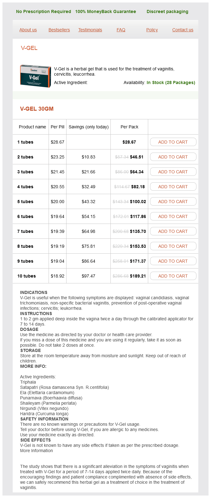 Tags: 30 gm v-gel with mastercard, 30 gm v-gel, generic v-gel 30 gm buy line, discount v-gel 30 gm fast delivery