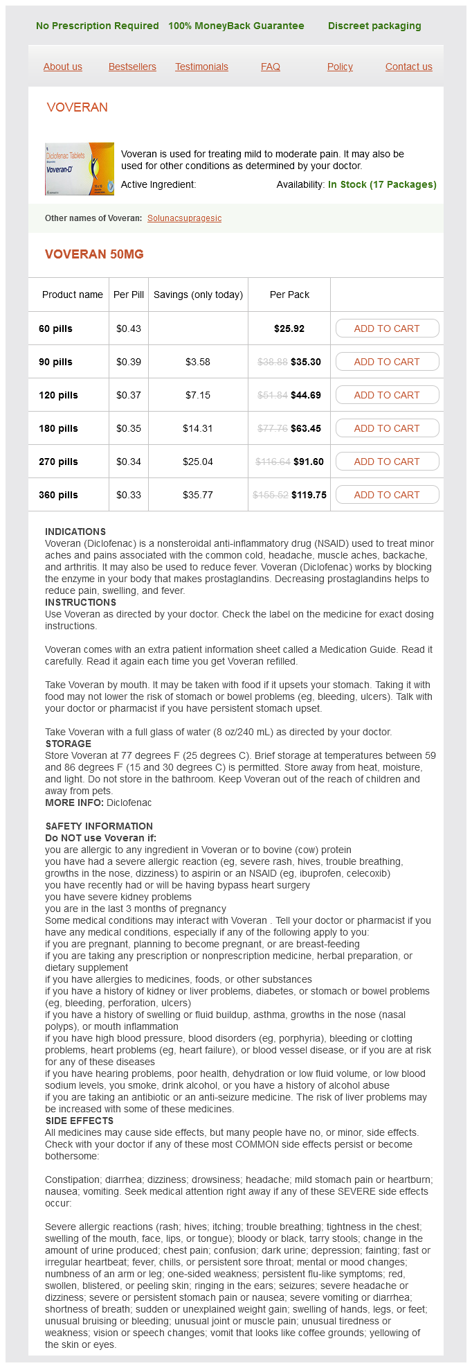 Voveran packs: 60 pills, 90 pills, 120 pills, 180 pills, 270 pills, 360 pills
