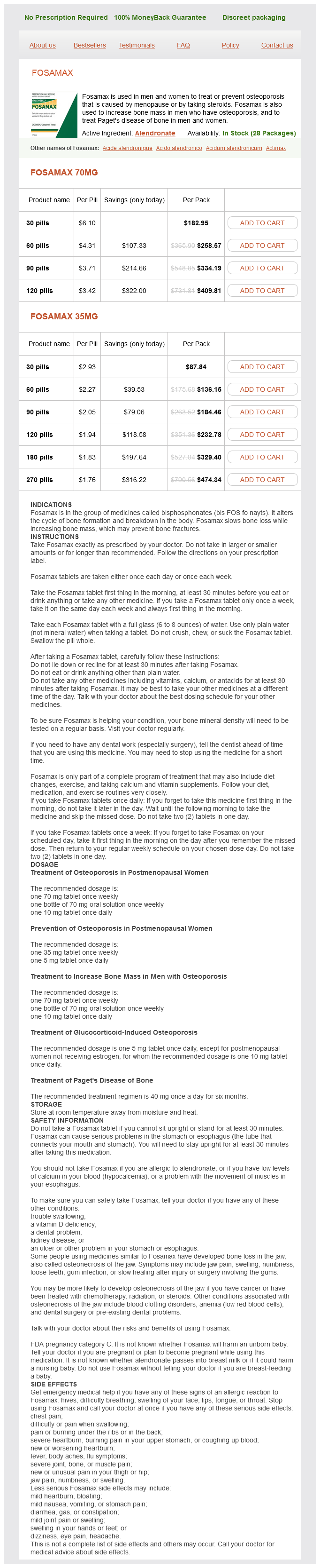 Alendronate packs: 30 pills, 60 pills, 90 pills, 120 pills, 180 pills, 270 pills