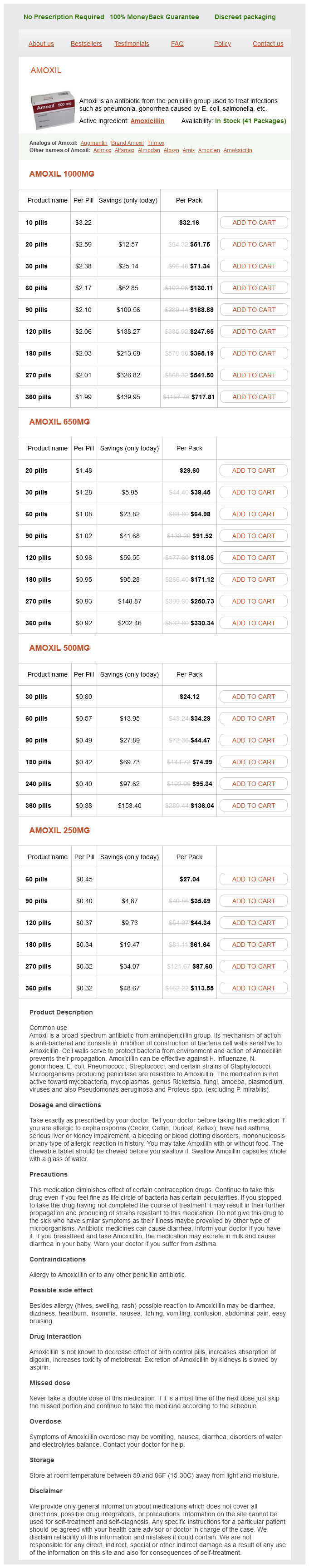 Amoxicillin packs: 10 pills, 20 pills, 30 pills, 60 pills, 90 pills, 120 pills, 180 pills, 270 pills, 360 pills, 240 pills
