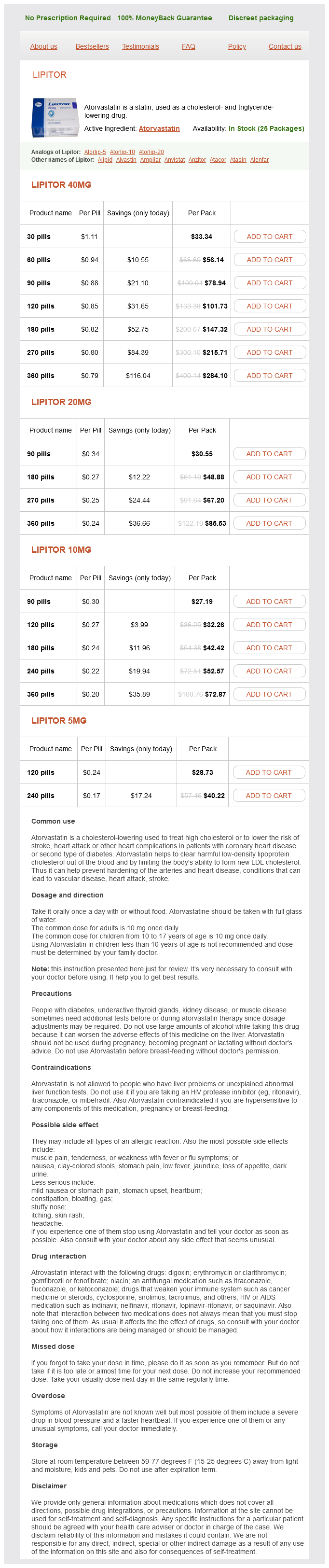 Atorvastatin packs: 30 pills, 60 pills, 90 pills, 120 pills, 180 pills, 270 pills, 360 pills, 240 pills
