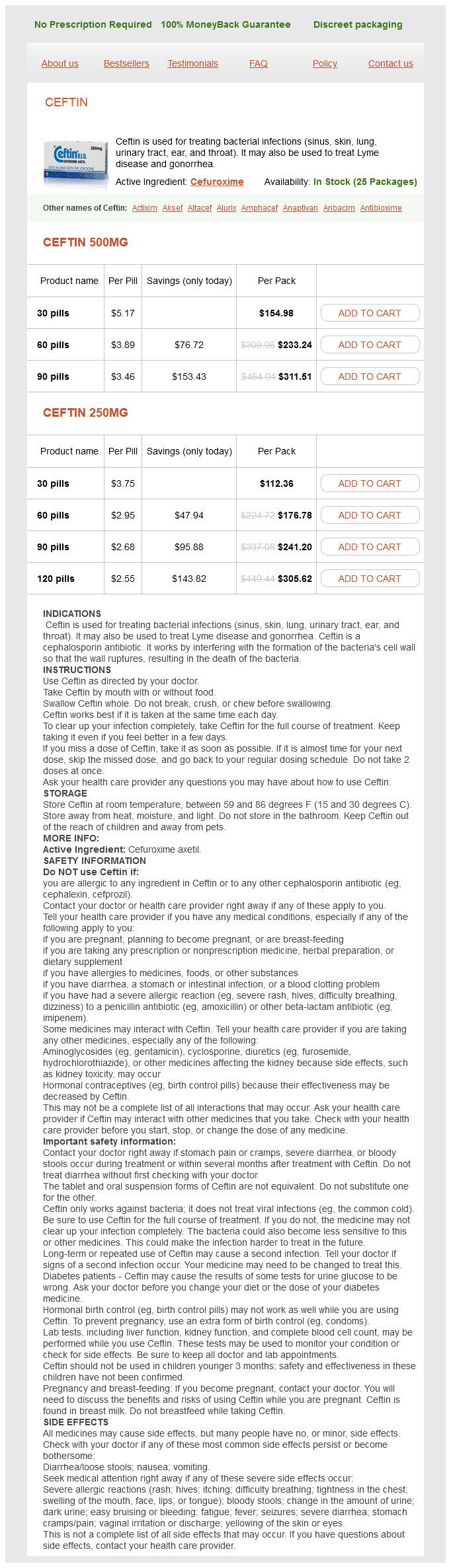 Cefuroxime packs: 30 pills, 60 pills, 90 pills, 120 pills