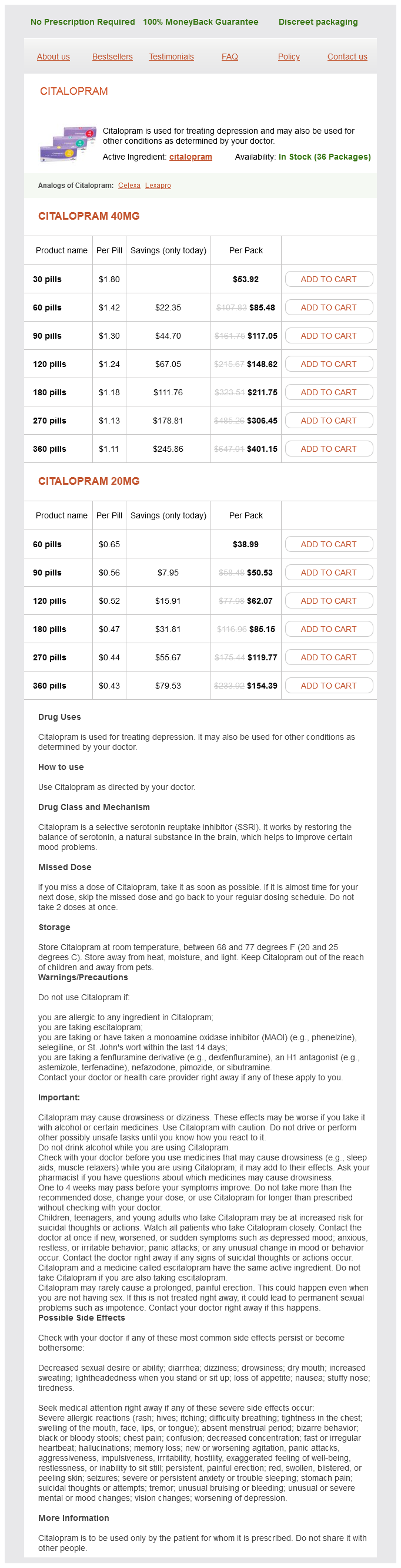 Citalopram packs: 30 pills, 60 pills, 90 pills, 120 pills, 180 pills, 270 pills, 360 pills
