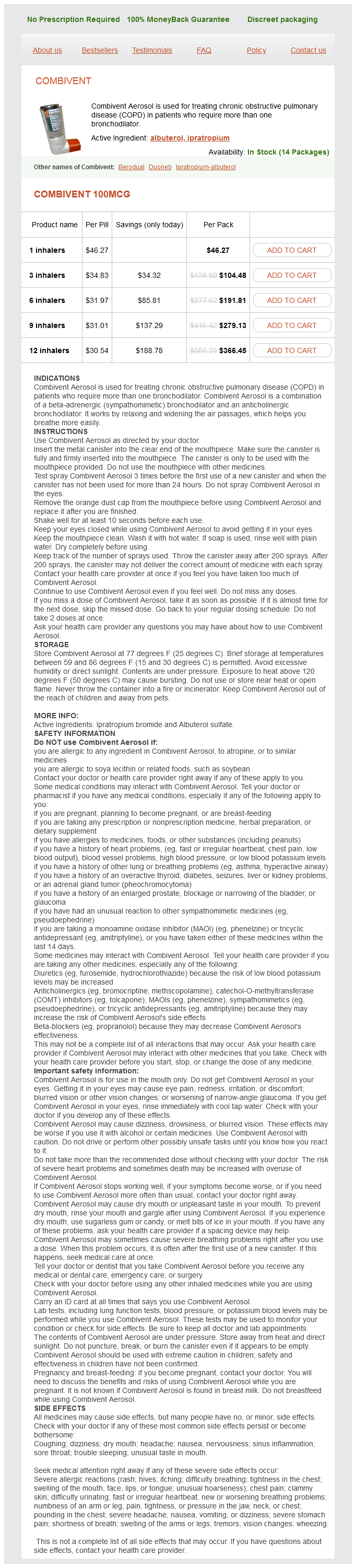 Combivent packs: 1 inhalers, 3 inhalers, 6 inhalers, 9 inhalers, 12 inhalers