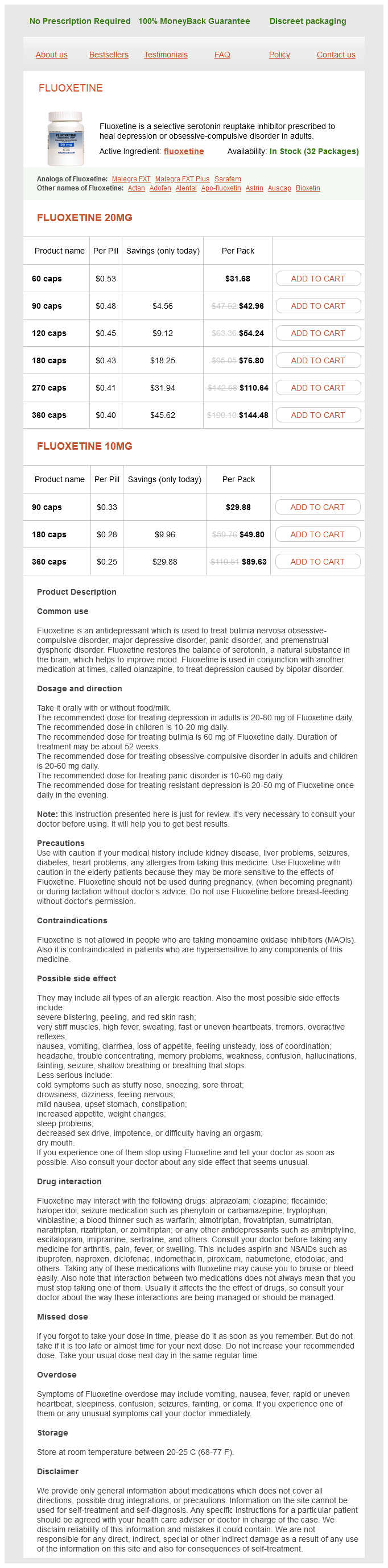 Fluoxetine packs: 60 caps, 90 caps, 120 caps, 180 caps, 270 caps, 360 caps