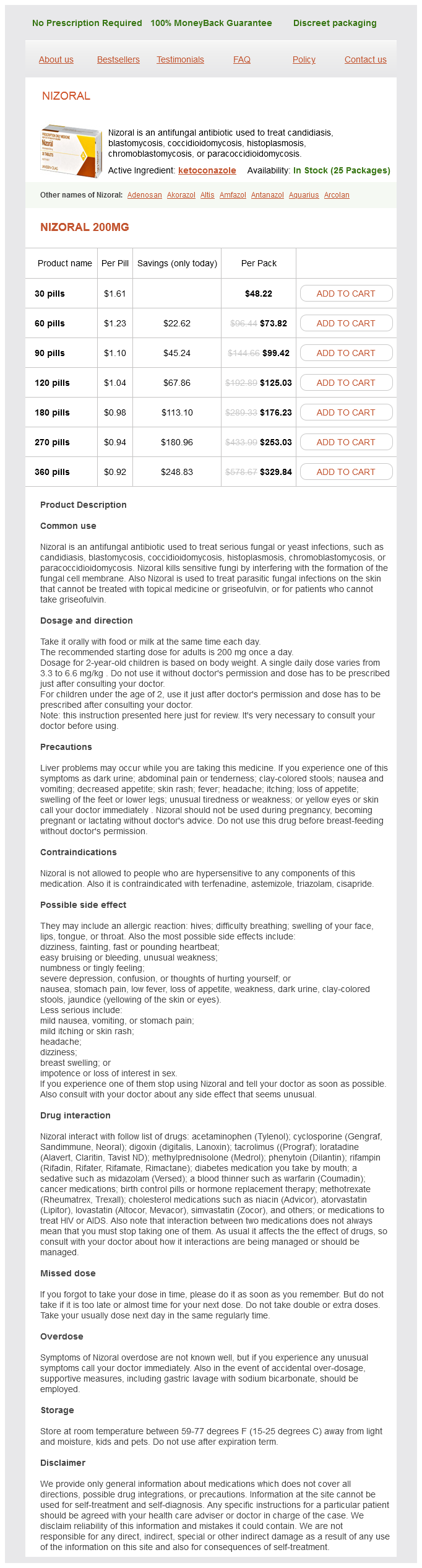 Ketoconazole packs: 30 pills, 60 pills, 90 pills, 120 pills, 180 pills, 270 pills, 360 pills