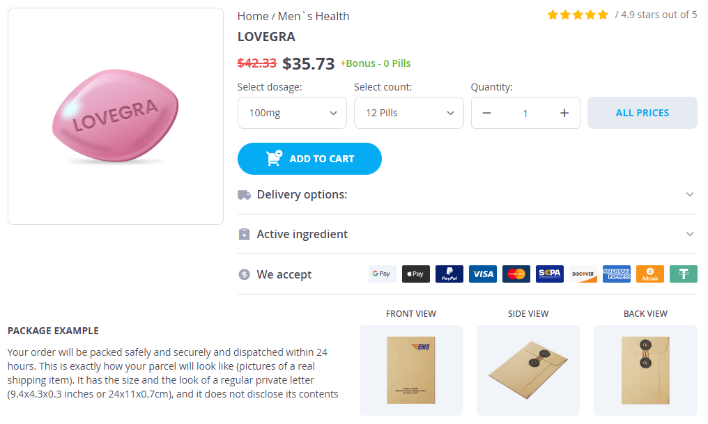 Lovegra packs: 8 pills, 12 pills, 16 pills, 32 pills