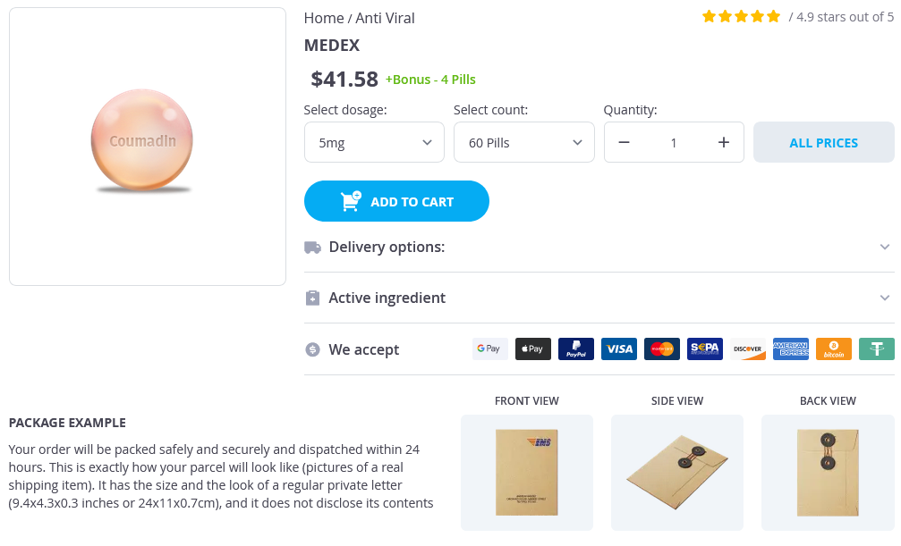 Medex packs: 60 pills, 90 pills, 120 pills, 180 pills, 270 pills, 360 pills