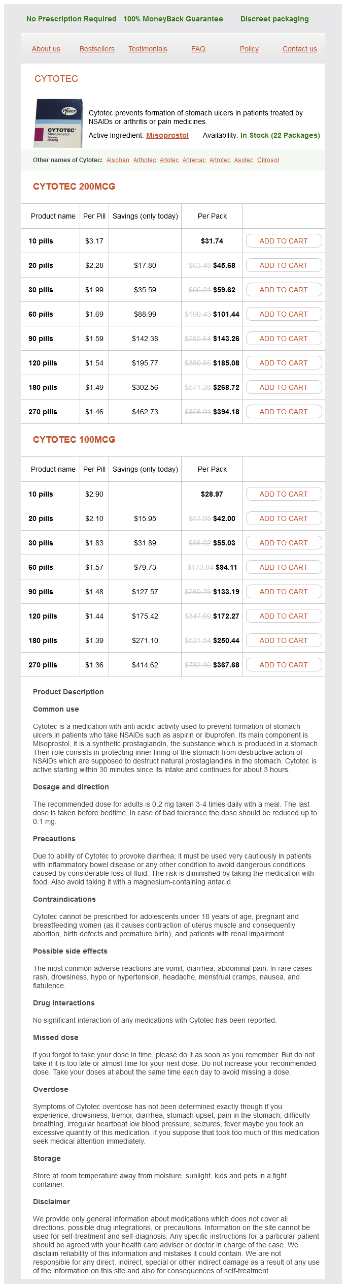 Misoprostol packs: 10 pills, 20 pills, 30 pills, 60 pills, 90 pills, 120 pills, 180 pills, 270 pills