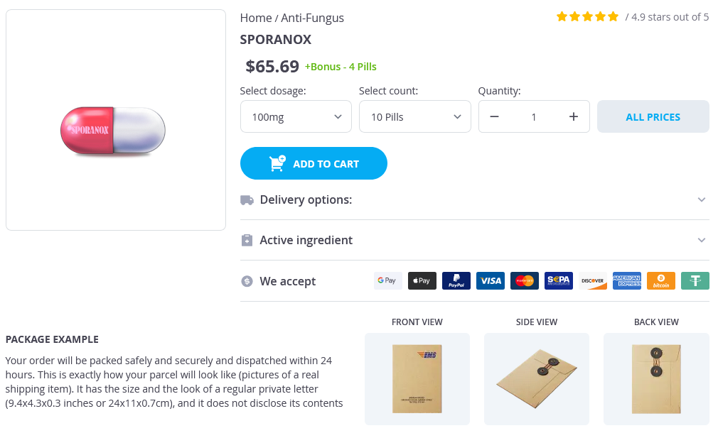 Sporanox packs: 10 pills, 20 pills, 30 pills, 40 pills, 50 pills