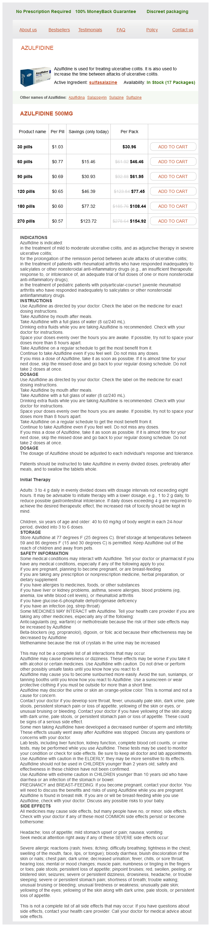 Sulfasalazine packs: 30 pills, 60 pills, 90 pills, 120 pills, 180 pills, 270 pills