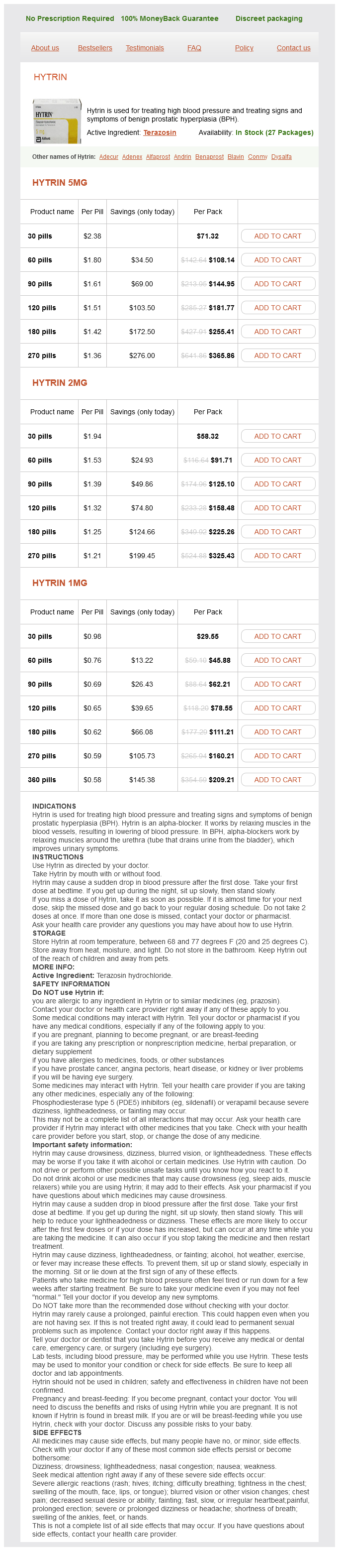 Terazosin packs: 30 pills, 60 pills, 90 pills, 120 pills, 180 pills, 270 pills, 360 pills