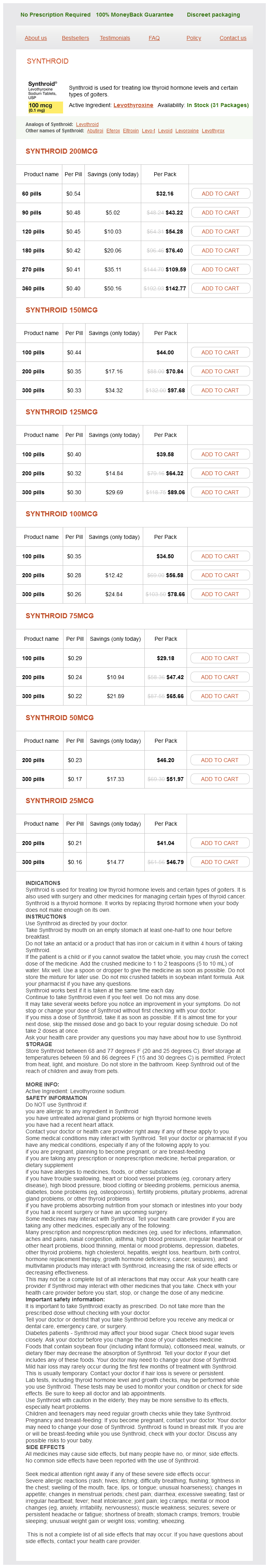 Thyroxine packs: 60 pills, 90 pills, 120 pills, 180 pills, 270 pills, 360 pills, 100 pills, 200 pills, 300 pills