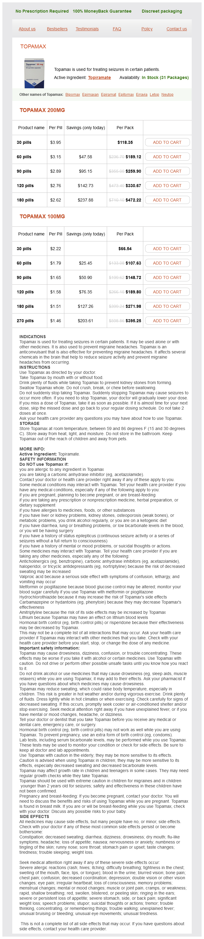Topamax packs: 30 pills, 60 pills, 90 pills, 120 pills, 180 pills, 270 pills