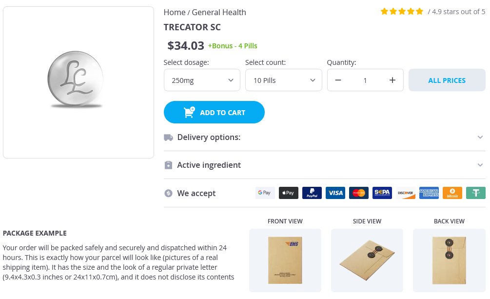 Trecator SC packs: 10 pills, 20 pills, 30 pills, 40 pills, 60 pills, 90 pills, 120 pills, 180 pills