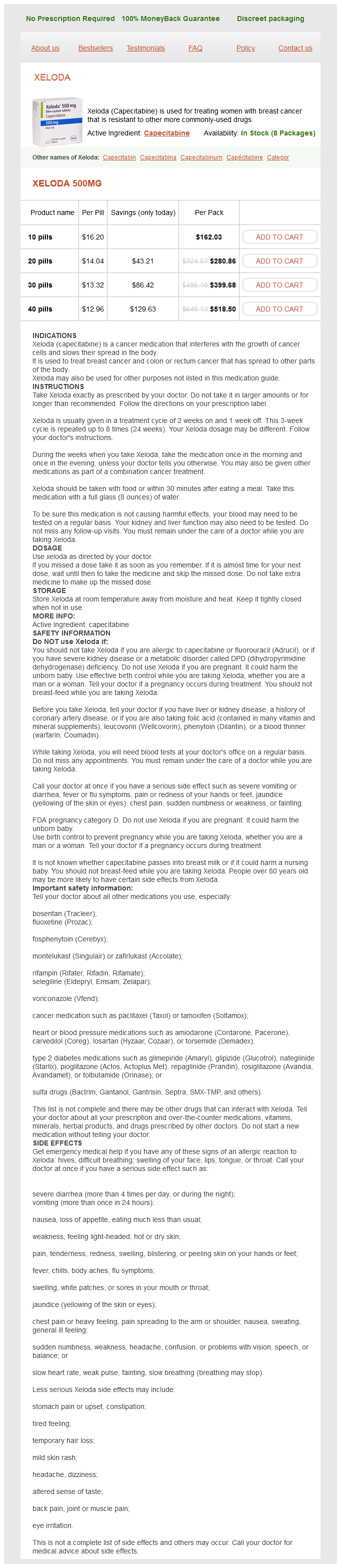 Capecitabine packs: 10 pills, 20 pills, 30 pills, 40 pills