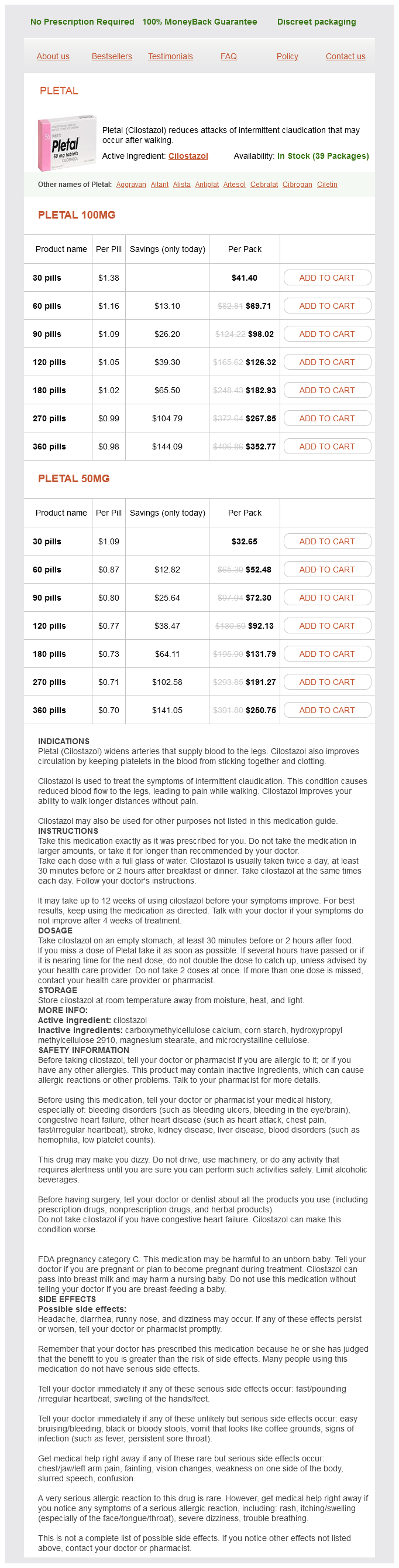 Cilostazol packs: 30 pills, 60 pills, 90 pills, 120 pills, 180 pills, 270 pills, 360 pills
