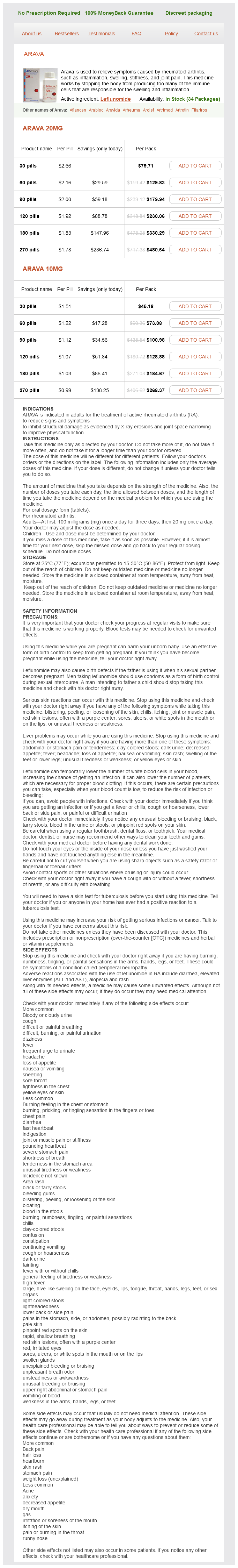 Leflunomide packs: 30 pills, 60 pills, 90 pills, 120 pills, 180 pills, 270 pills