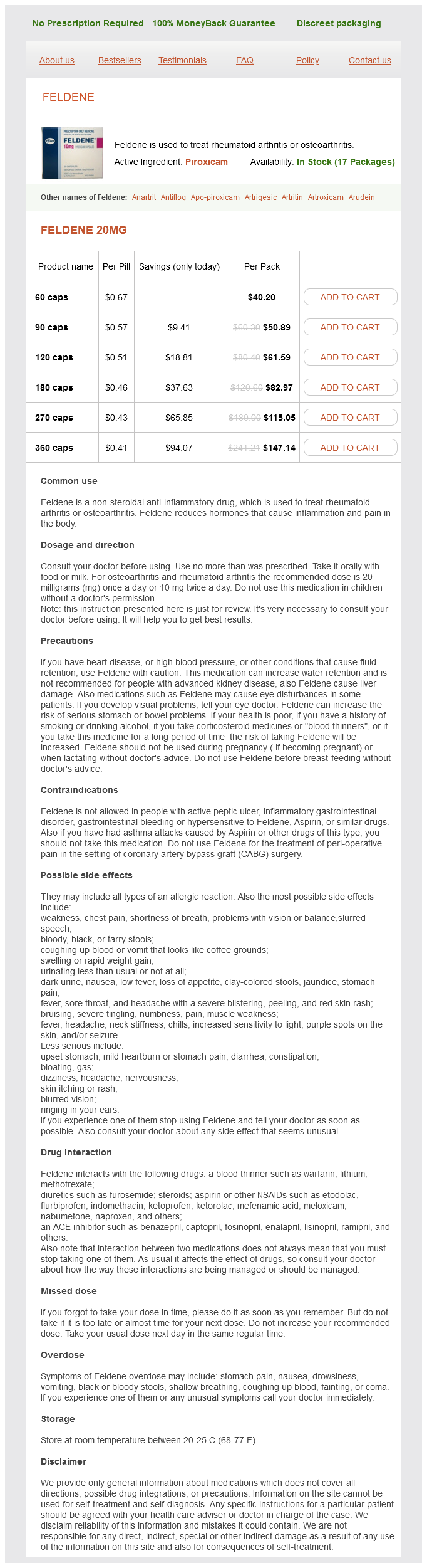 Piroxicam packs: 60 caps, 90 caps, 120 caps, 180 caps, 270 caps, 360 caps