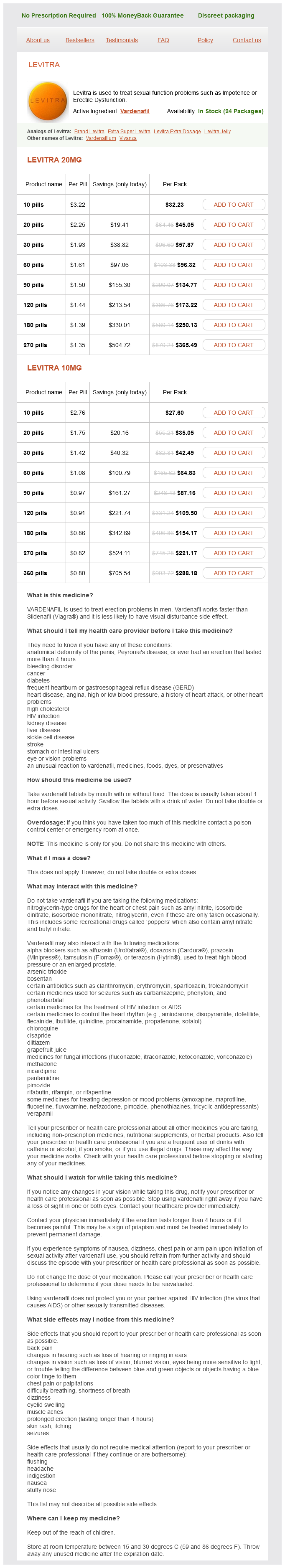 Vardenafil packs: 10 pills, 20 pills, 30 pills, 60 pills, 90 pills, 120 pills, 180 pills, 270 pills, 360 pills
